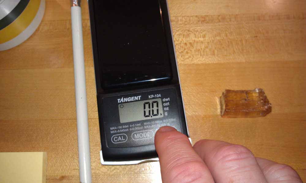 (For larger specimens I use a larger scale with a 5kg. maximum and a larger water container.)