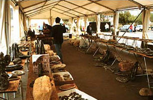 | Travel Hint: At any of the shows, pick up a Tucson Show Guide. This is a heavy ,complete directory of all shows, dealers, information on shuttle bus routes, and a calendar of special events. IT IS THE ONE SOURCE FOR ALL INFORMATION ABOUT DEALERS. If you are looking for fresh water pearls, or for meteorites, or fossils, or gemstones, this book has dealers listed by category and is the best way to locate the dealers selling what you want. | |||