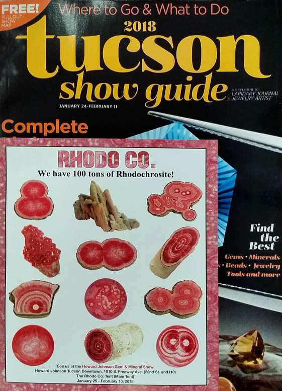 | Below is the real Tucson Show Guide. Do not be fooled by imitators to the right. This is the one that has ALL dealers listed and ALL show venues. One tip-off to the genuine guide is that there is always (in past years) an advertisement for Rhodo.Co pasted to the cover. | The is the MetaGuide targeted for metaphysical dealers. Grab one if that is what you are looking for. But it is NOT the Tucson Show Guide and does not list all dealers. | The is the EZ-Guide and has an incomplete list of dealers. I see no point in grabbing more than one guide, so why bother with this - it is NOT the Tucson Show Guide. | This is the Gem Show Directory, another wanna-be. Why get a look-alike. Get the real Tucson Show Guide. |